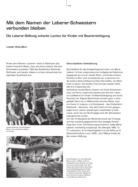 Schwestern gründeten 1952 das Kinderheim Weidmatt Die Initiative für das Kinderpflegeheim kam von Maria