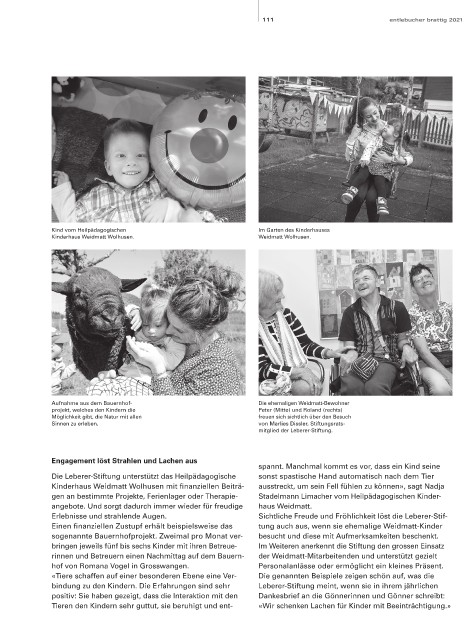 bringen jeweils fünf bis sechs Kinder mit ihren Betreue- Im Weiteren anerkennt die Stiftung den grossen Einsatz