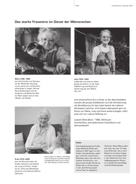 Anna (1918 – 2020) zentrum Berghof. Das Bild entstand Behinderungen oder mit chro- in der Weidmatt sind. Das