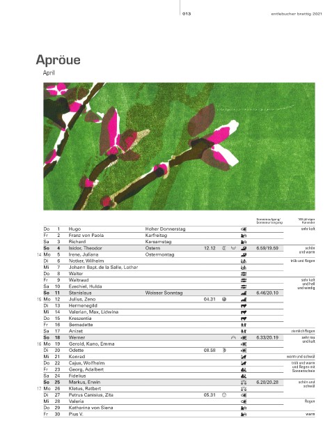 So 4 Isidor, Theodor Ostern 12.12 2 J 6.59/19.59 schön