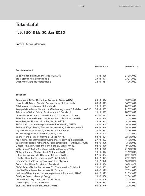 Röösli Peter, Glaubenbergstrasse 62, Finsterwald b. Entlebuch 21.02.1952 20.02.2020
