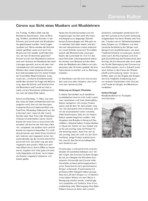musik etc.) und keine Schülerkonzerte Im Nachhinein war für mich die Corona- um eine mögliche Ansteckung auch