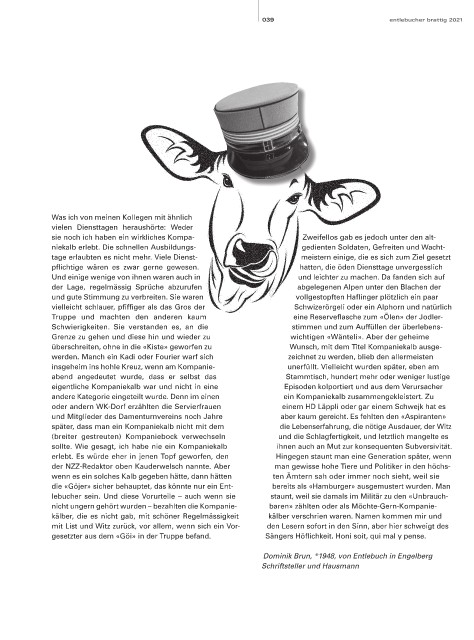 überschreiten, ohne in die «Kiste» geworfen zu Wunsch, mit dem Titel Kompaniekalb ausge-