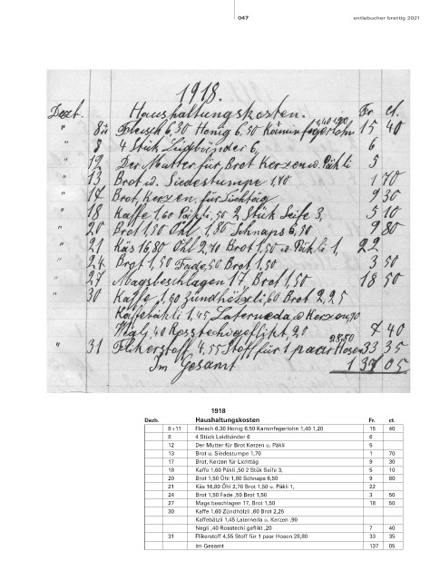21 Käs 16,80 Öhl 2,70 Brot 1,50 u. Päkli 1, 22