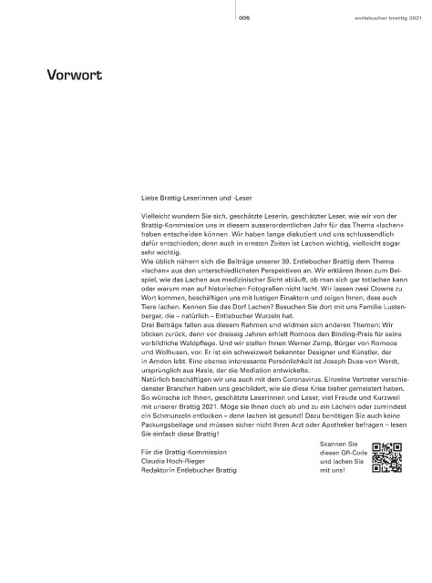 Brattig- Kommission uns in diesem ausserordentlichen Jahr für das Thema «lachen»