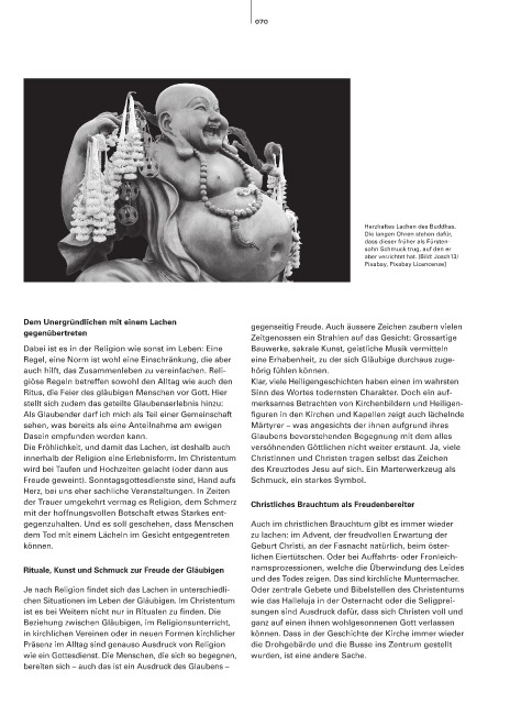 Je nach Religion findet sich das Lachen in unterschied li- Oder zentrale Gebete und Bibelstellen des Christentums