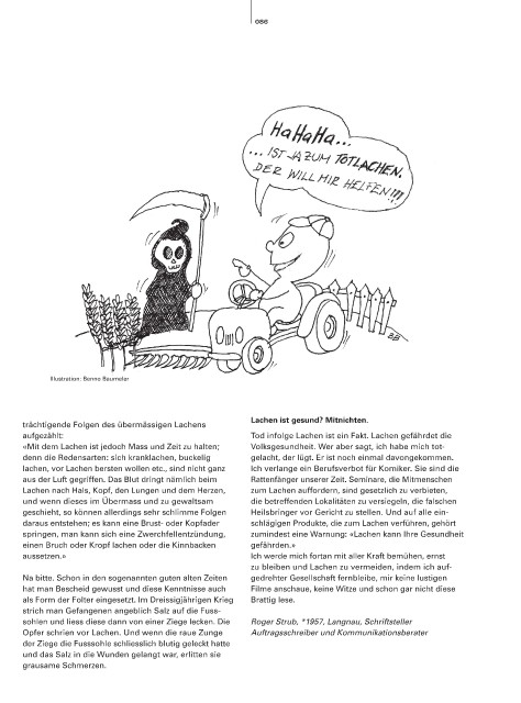 «Mit dem Lachen ist jedoch Mass und Zeit zu halten; Volksgesundheit. Wer aber sagt, ich habe mich tot-