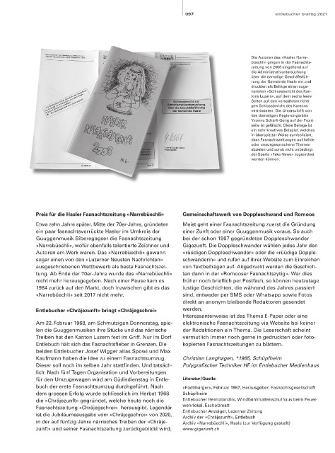 ausgeschriebenen Wettbewerb als beste Fasnachtszei- von Textbeiträgen auf. Abgedruckt werden die Geschich-
